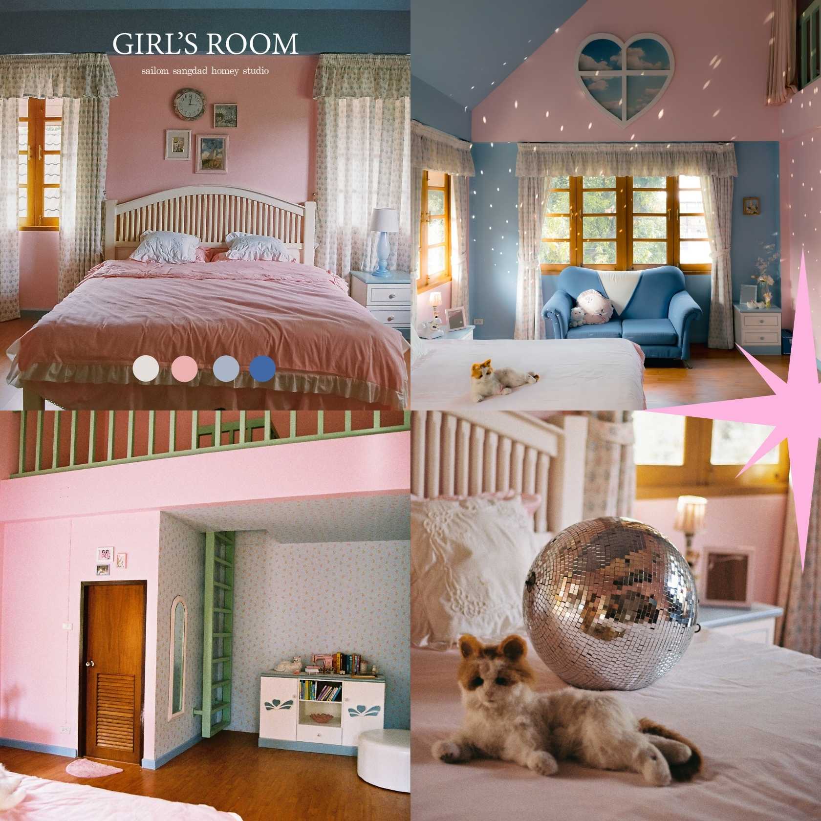 ขึ้นบันไดมาอีกนิด ทุกคนก็จะเจอกับห้องนอนโซน GIRL'S ROOM จุดรวมความหวานขั้นสุดในบ้านสายลมแสงแดด ที่นอกจะจัดMini eventหวานๆน่ารักๆตามประสาสาวๆได้แล้วยังเป็นอีกจุดถ่ายรูปสุดฮิตในบ้านสายลมแสงแดดเพราะสามารถปีนบันไดขึ้นไปถ่ายกับชั้นลอยด้านบนในห้องได้ด้วย